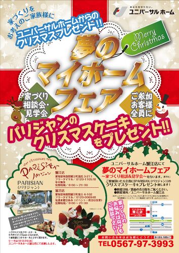 お客様のユニバーサルホーム蟹江店様にて ご来場プレゼントに「クリスマスケーキ」をドーンとご用意されております! 現在、家づくりを検討中の皆さま 蟹江にあります「CBCハウジング蟹江インター住まいの公園」にあるユニバーサルホーム蟹江店に行きま…
