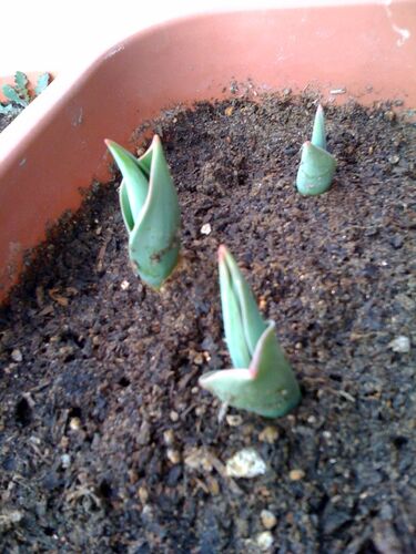 ついに! チューリップの芽が出ました! 球根を植えて約2週間。 癒しと根気のため お花を植えてみました。 春が待ち遠しいなぁ ☆J☆